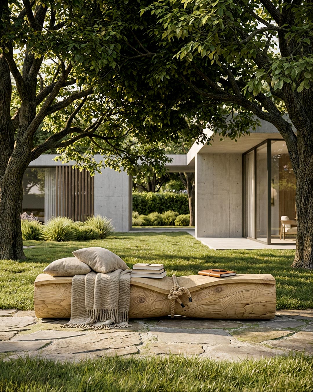 Panca in legno massello di cedro profumato, ricavata da un unico blocco. Il design si distingue per la forma sinuosa e avvolgente, ispirata a un foglio di carta arrotolato, che crea un contrasto tra la solidità del massello e la percezione visiva di leggerezza e morbidezza. Un dettaglio in corda nautica, leggermente decentrato, enfatizza questo effetto, conferendo l’idea di trattenere il volume in una posizione avvolta.