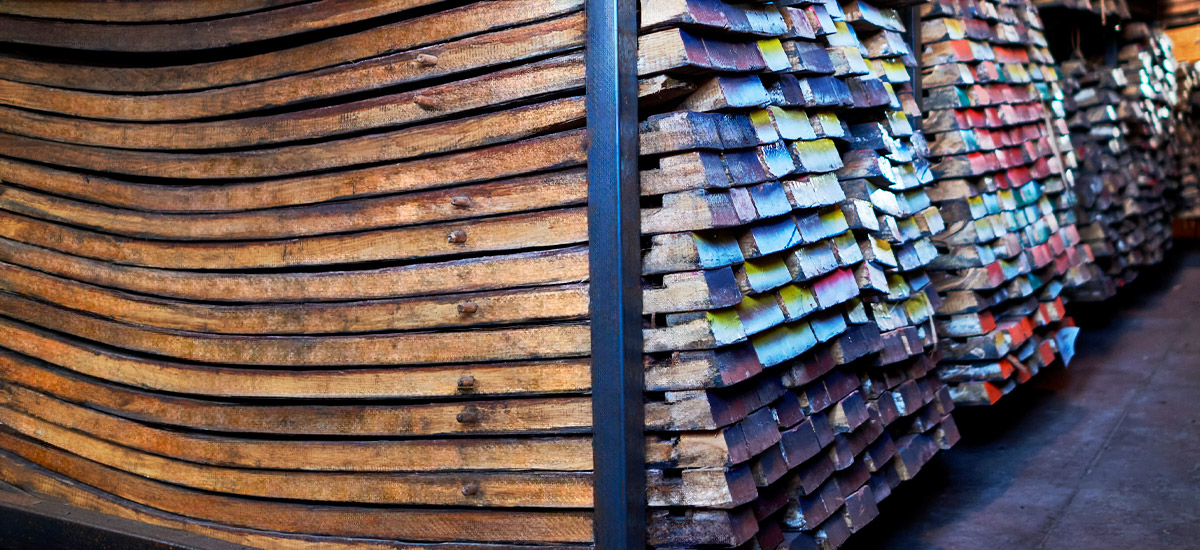 Les barriques sont fabriquées en chêne, séché à l'air libre pendant au moins trois ans. Chaque douelle qui les compose est unique, avec des courbes créées par la chaleur du feu et des teintes vineuses qui témoignent de la rencontre avec le vin. Ce bois, chargé d'histoire et de caractère, est un matériau noble, capable d'exprimer une nouvelle beauté même après avoir terminé son cycle de vie dans la cave.