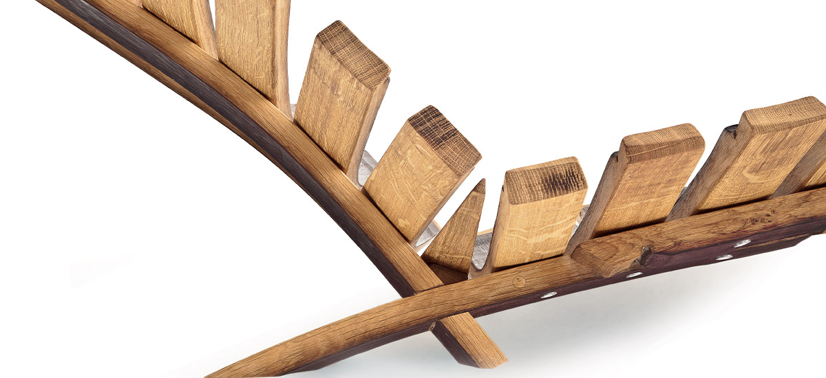 Pour Riva1920, la réutilisation du bois de barrique représente un choix éthique et durable. Cette approche permet de transformer un déchet en œuvre d'art, alimentant ainsi un cycle vertueux de récupération et de créativité.