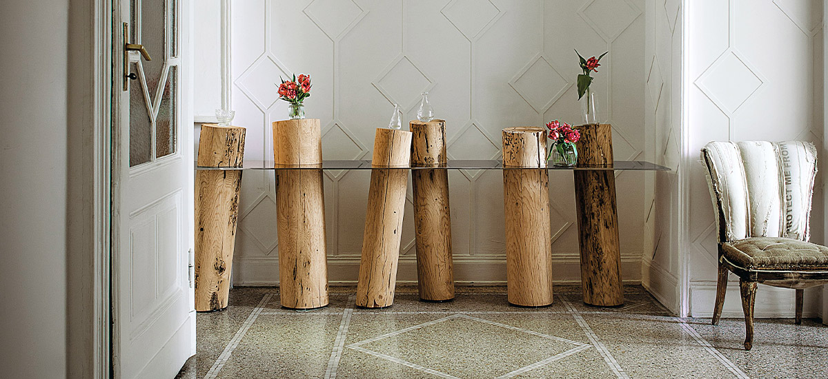 Gli arredi in Briccole di Venezia si distinguono per il loro aspetto unico, caratterizzato da incisioni naturali simili a un merletto lasciate da un mollusco, la teredine marina, e per la loro straordinaria sostenibilità, contribuendo a un ciclo produttivo a basso impatto ambientale.