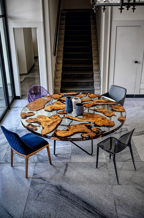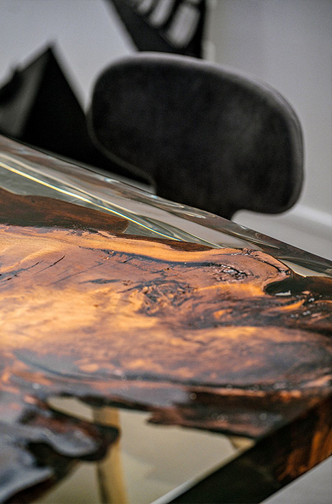 Компания Riva1920 смогла усовершенствовать этот необыкновенный материал, создав уникальные и неповторимые дизайнерские изделия. Каждый стол и журнальный столик в коллекции рассказывает тысячелетнюю историю, созданную природой, временем и искусной работой. Будь то обеденный стол или журнальный столик, каждое творение поражает своей индивидуальностью и эстетическим воздействием. Кроме того, каждому покупателю предоставляется сертификат подлинности продукции с точной датировкой года каури, определенной радиоуглеродным методом.